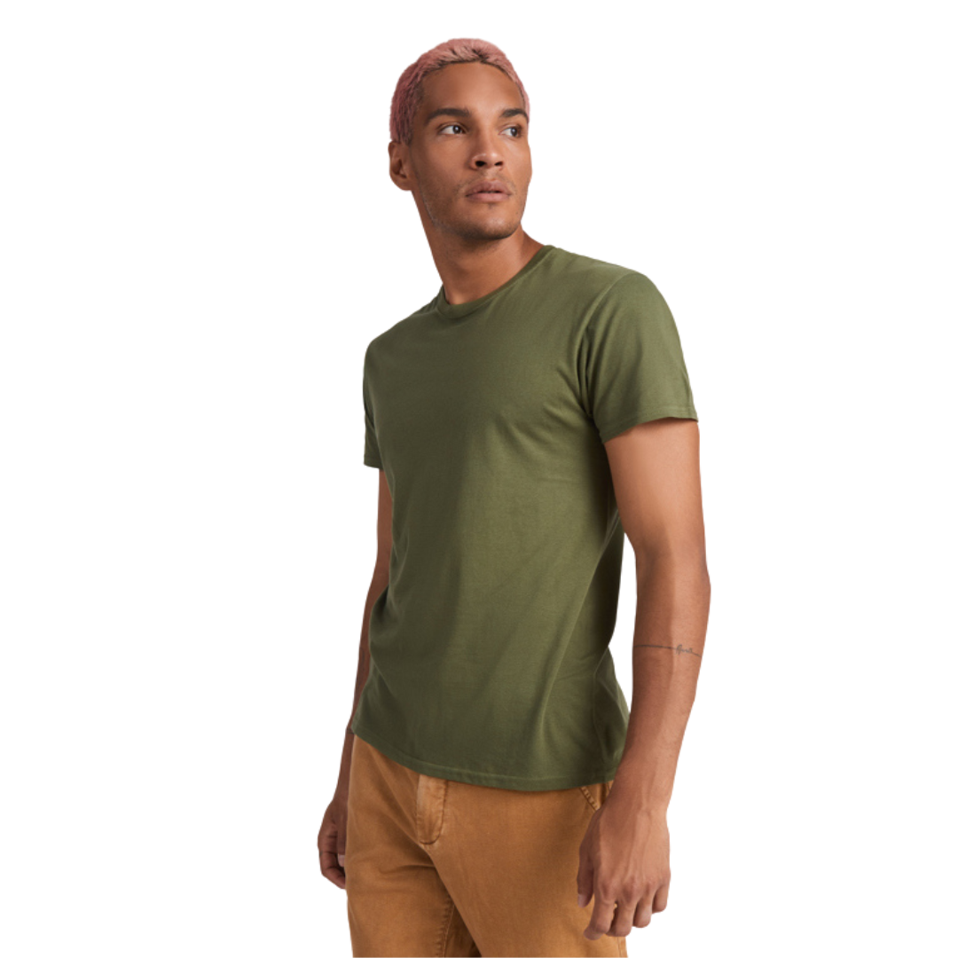 Camiseta de manga corta de cuello redondo doble con elastano, confeccionada en tejido tubular en tallas de